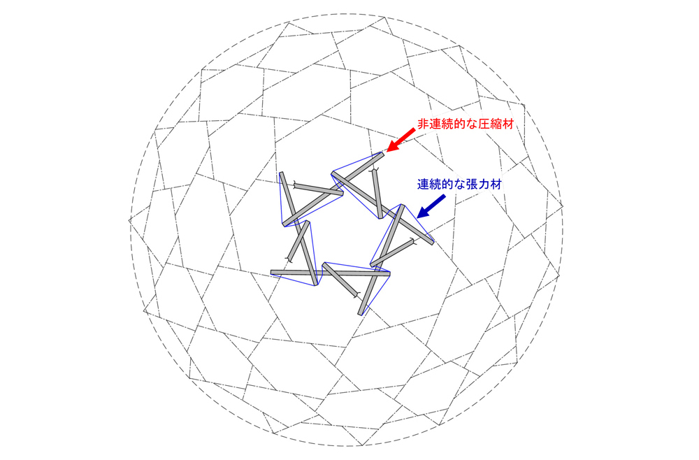 テンセグリティと部材配置が似ている?